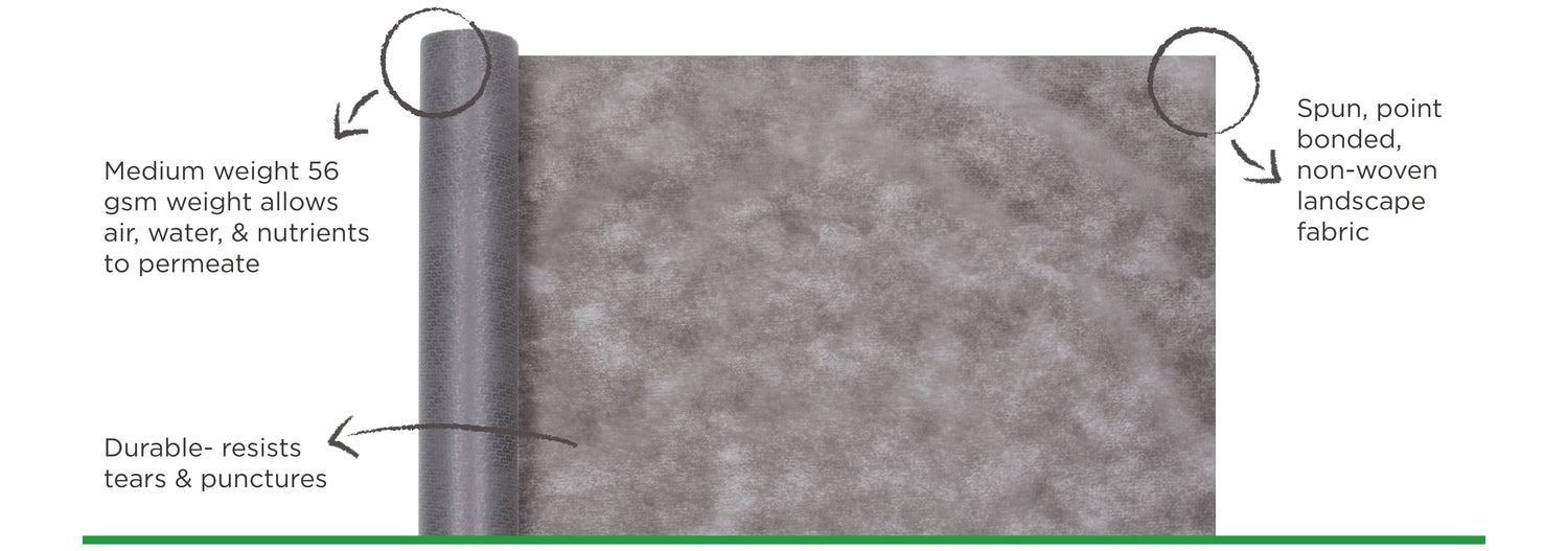 Gardien® PolyWeb™ is a non-woven landscape fabric designed for use in perennial landscapes, providing excellent chemical-free weed control and enhanced permeability for uncompromised plant health. Polyweb™'s engineering allows a high volume of water, air, and nutrients to penetrate and offers UV resistance for added longevity. This versatile fabric can be used in a variety of landscaping applications while effectively preventing weeds and helping manage erosion. Easy to use and cut, PolyWeb™ is compatible with all types of mulch and stone.