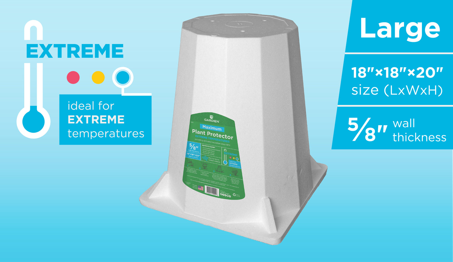 The large capacity of our Maximum Plant Protector accommodates a wide variety of plant sizes. The heavy-duty Maximum Plant Protector offers 50% more insulation than the Super Plant Protector for guaranteed protection against the most extreme winter elements.